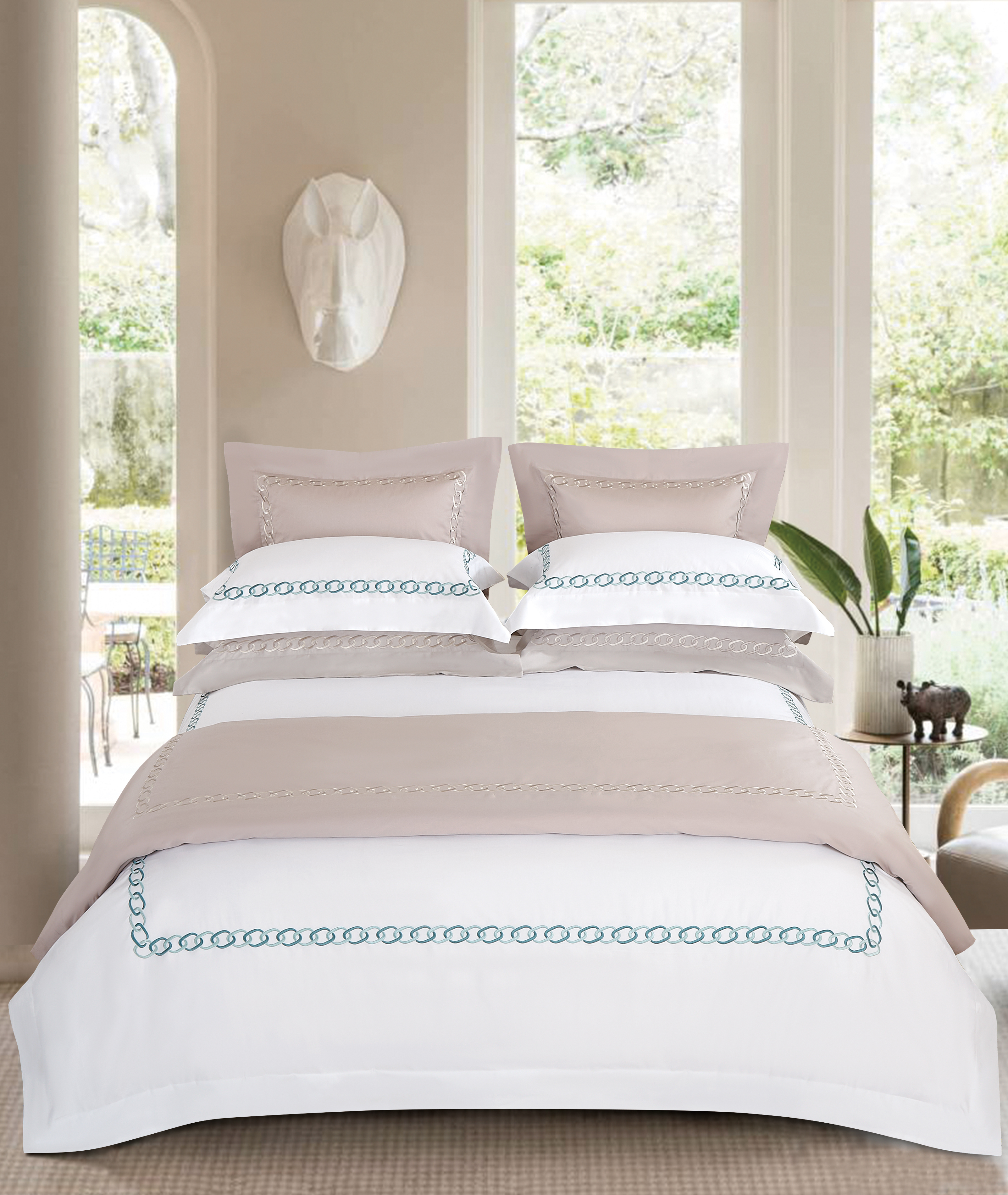 純棉貢緞面料1000TC酒店和家用系列140支純色現代簡(jiǎn)約風(fēng)刺繡四件套 - C019