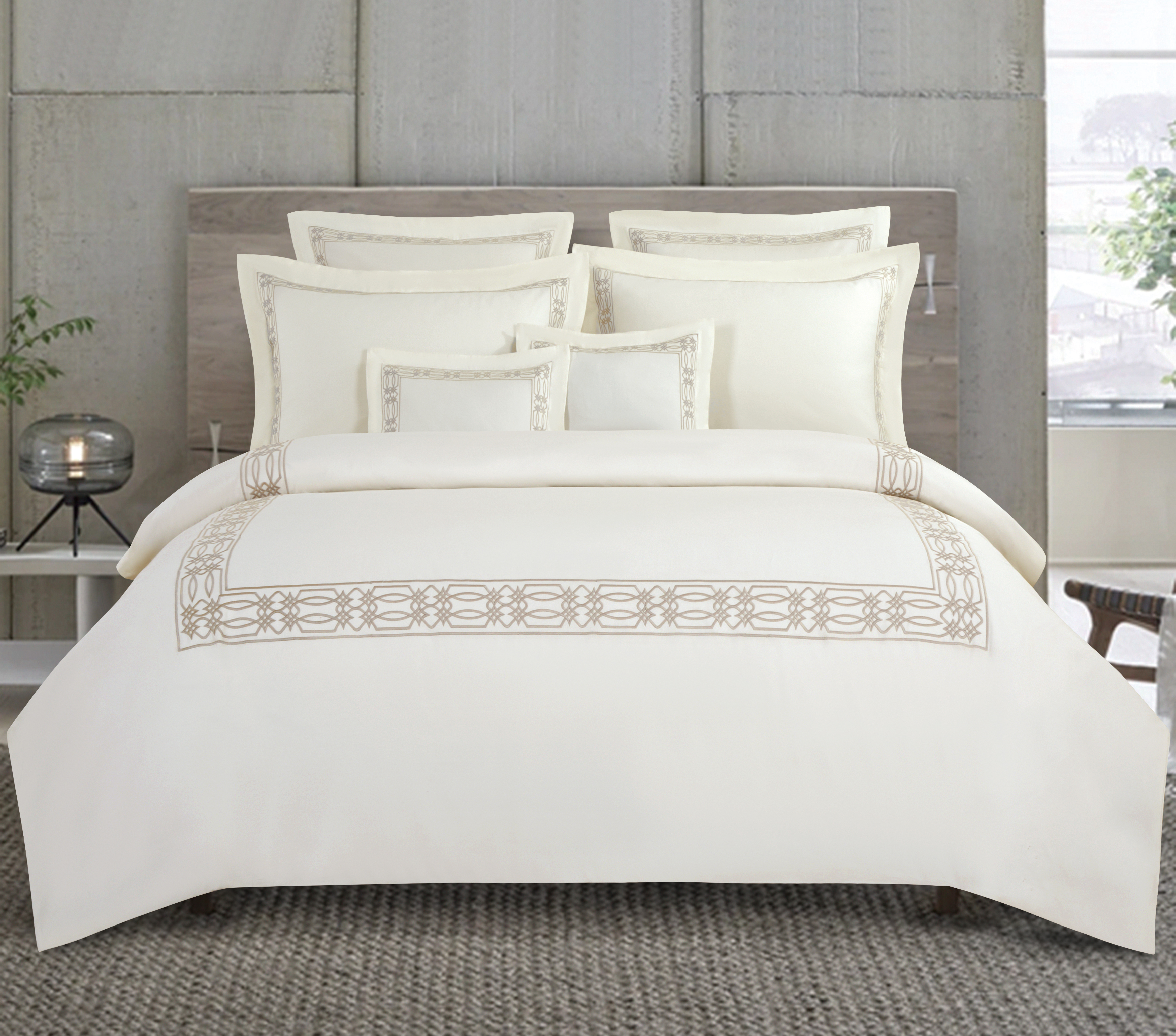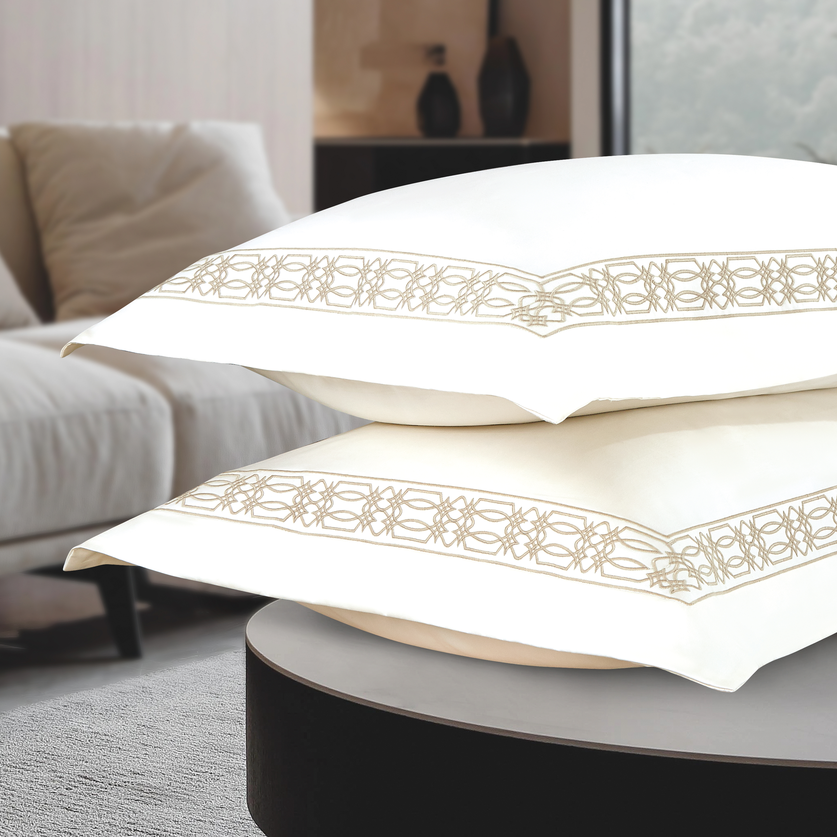 純棉貢緞面料800TC酒店和家用系列120支純色白色現代奢華風(fēng)刺繡四件套 - C014
